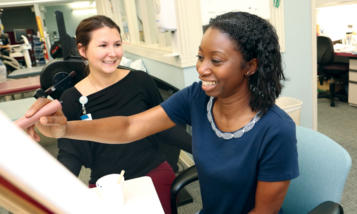 Aranmolate used outpatient therapy to help her learn how to live on her own again. She needed strength to walk up the steps to her townhouse, to get to doctor appointments, to cook a meal, eat, and write with her right hand, and to walk. The former marathon runner was confined to a wheelchair for three months, and used it off and on for a year while she regained her strength. “The therapists tailored all of the therapy to meet my needs, and it helped me build up strength over time,” she said.